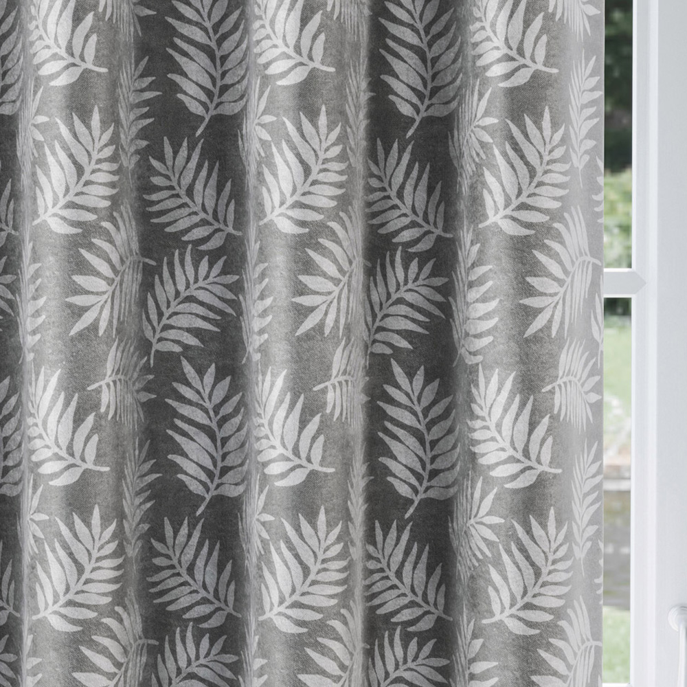 Transform your living space with the Enhanced Living Oakland Grey Leaf Print Blackout Eyelet Thermal Noise Reducing Curtains 117 x 137cm, designed to combine modern elegance with practical functionality. Featuring a stylish eyelet header for easy hanging and smooth operation, these ready-made curtains are adorned with a sophisticated all-over leaf print. The triple weave technology fabric, with its three interwoven layers, includes a central black thread. It blocks up to 85% of incoming light and insulates against cold air, eliminating the need for a separate lining and ensuring a soft, elegant drape. These curtains not only enhance sleep quality and overall well-being by reducing light and noise but also contribute to energy savings by keeping your space cooler in summer and warmer in winter. Effortless installation and operation, make them an ideal choice for adding a touch of refinement to your home.