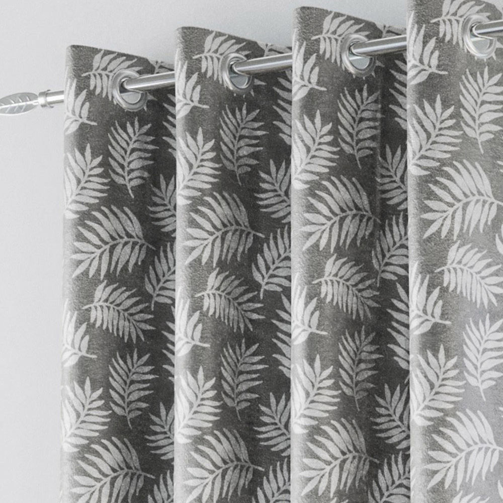 Transform your living space with the Enhanced Living Oakland Grey Leaf Print Blackout Eyelet Thermal Noise Reducing Curtains 168 x 183cm, designed to combine modern elegance with practical functionality. Featuring a stylish eyelet header for easy hanging and smooth operation, these ready-made curtains are adorned with a sophisticated all-over leaf print. The triple weave technology fabric, with its three interwoven layers, includes a central black thread. It blocks up to 85% of incoming light and insulates against cold air, eliminating the need for a separate lining and ensuring a soft, elegant drape. These curtains not only enhance sleep quality and overall well-being by reducing light and noise but also contribute to energy savings by keeping your space cooler in summer and warmer in winter. Effortless installation and operation, make them an ideal choice for adding a touch of refinement to your home.
