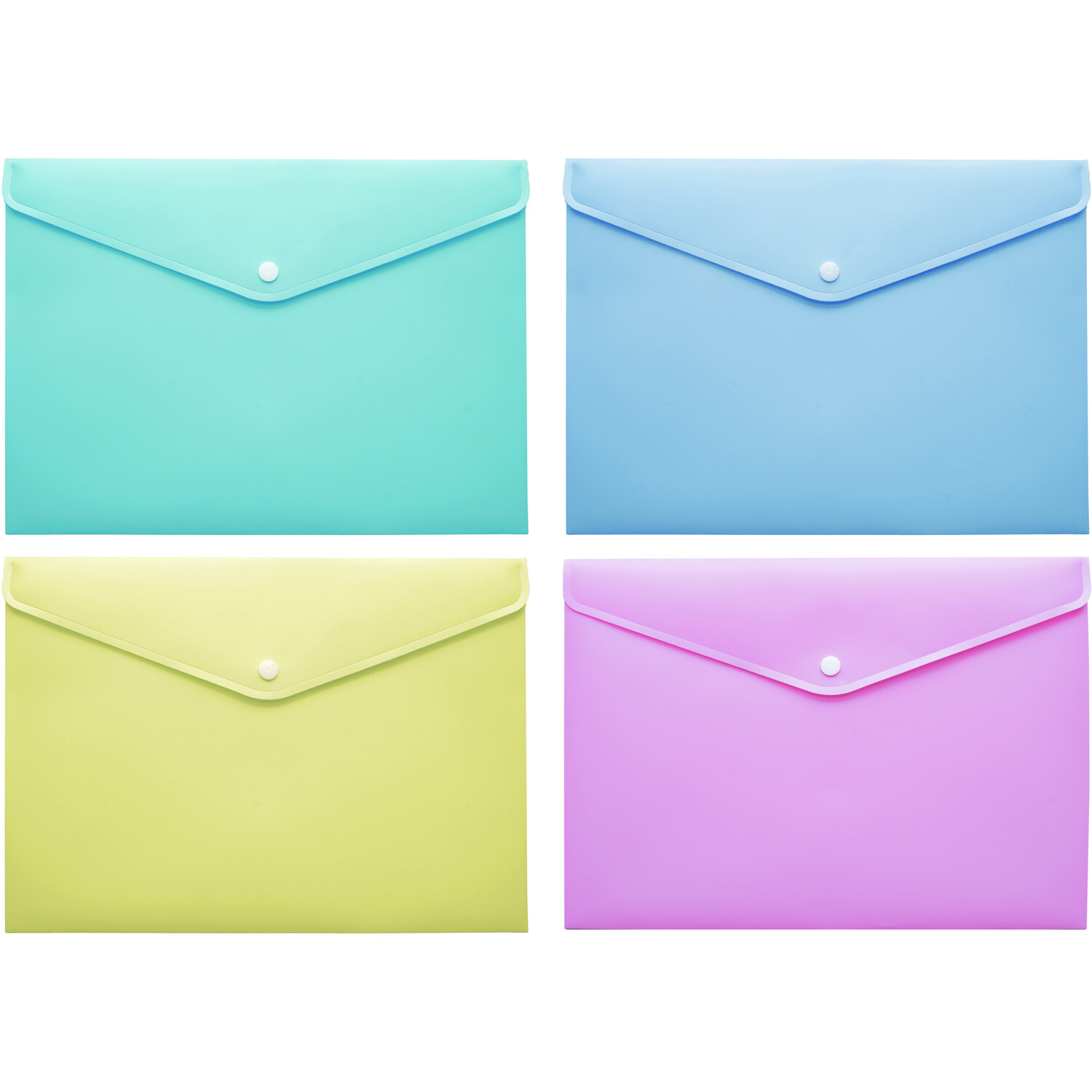 Strong and stylish, the Envelop Folder Pastel is excellent for keeping your documents organised. Available in an assortment of pastel colours, pink, yellow, green or blue, all with a secure white button closure to keep your paperwork safe.