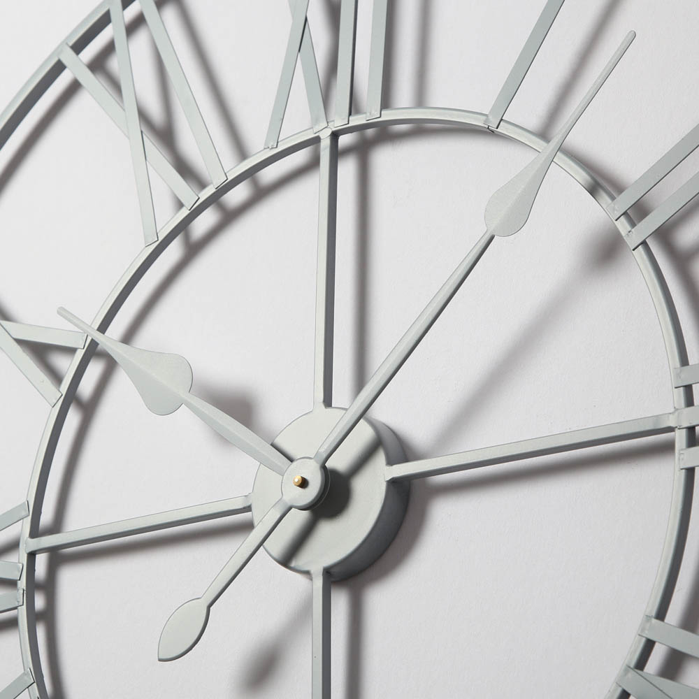 Let time become a feature in your home with the Home Garden Direct EOS Grey Skeleton Wall Clock with Roman Numerals 80cm. This skeleton wall clock is a premium timepiece that adds a decorative flair to your interiors while keeping you on time. Designed with an open, skeleton-style frame, this clock combines modern simplicity with vintage charm. Its circular design is complemented by large, easy-to-read Roman numerals, making it both a practical and stylish addition to any room. Crafted from durable metal, this clock is built to last and adds a touch of elegance to your space. The minimalist look allows it to blend seamlessly with different decor styles, from modern to classic. Given its quiet mechanism, it runs smoothly without disturbing your peaceful moments, making it ideal for living rooms, bedrooms, or any room where a serene atmosphere is important. This wall clock’s extra-large numerals make it easy to read from any corner of the room.