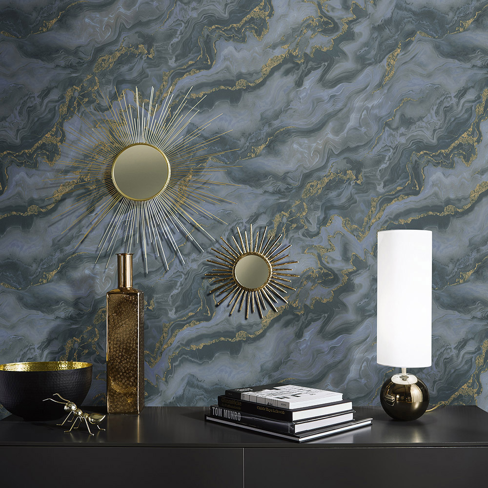 Transform your space in no time with the Erismann Elle Mystic Spell Blue Vinyl Wallpaper. It features a textured stone look with a marble finish that perfectly resembles the surface of semi-precious stones. The glitter details integrated into the design bring a touch of drama and sophistication, taking the wallpaper to a whole new level. Plus, it's super convenient to use; just paste the wall for easy application and removal, so you can skip the hassle of a paste table.