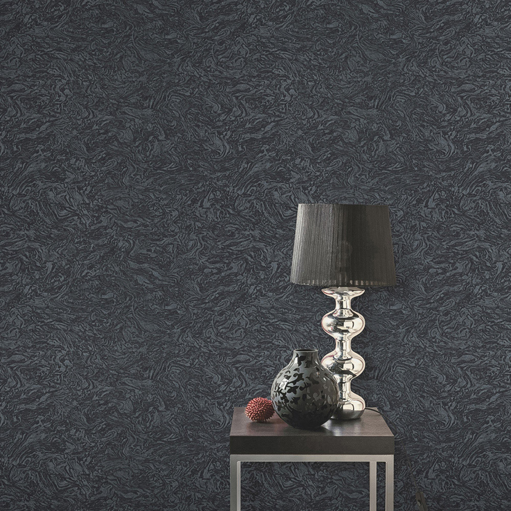 Give your home a modern touch with the Erismann Flowing Marble Black Wallpaper. This beautiful design features an organic pattern resembling the grains of stone and marble, with matte-gloss contrasts. This vinyl wallpaper with non-woven backing has a discreet yet lively look. This wallpaper is perfect for contemporary wall decoration.