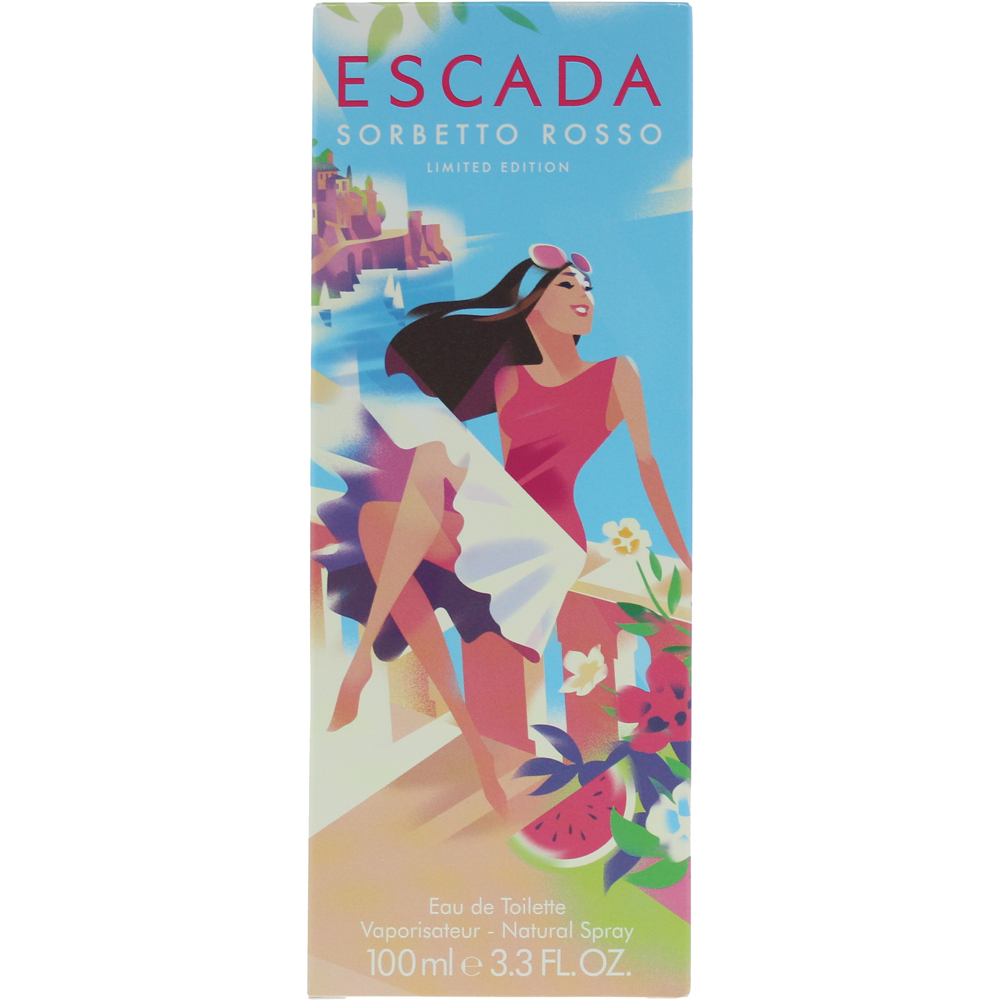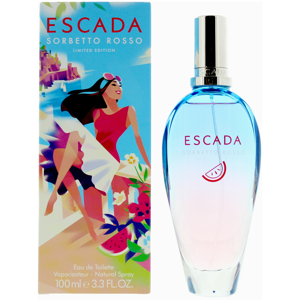 Sorbetto Rosso by Escada is an aromatic fruity fragrance for women, launched in 2018. This refreshing scent opens with bright and juicy top notes of pear, calone, and tangerine, creating an uplifting and zesty introduction. The heart is a delightful blend of watermelon, sea salt, watery notes, tiare flower, apple, hedione, rose, and strawberry, evoking a sense of summer freshness and floral sweetness. The base notes of amber, praline, and musk provide a warm, sweet, and smooth finish, adding depth and longevity to the fragrance. Sorbetto Rosso is perfect for those who enjoy vibrant, fruity florals with a touch of sweetness, ideal for the warmer months.