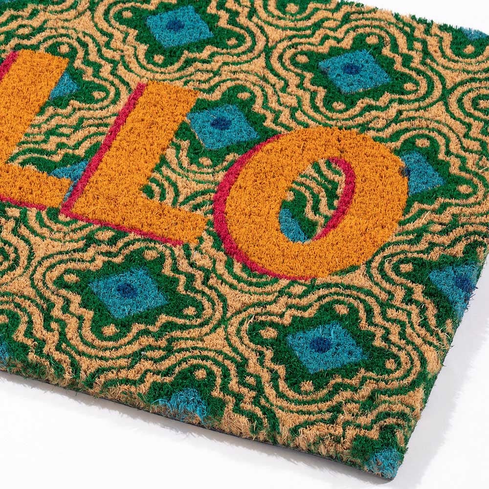 Brighten up your entryway with the Astley Hello Printed Multi Doormat, a vibrant addition to the Pride of Place collection. This doormat, sized 40 x 60cm, is not only a colourful greeting for your guests but also a practical solution to keep your home clean. Crafted from 100% natural coir, the bristles are perfect for scraping off dirt from shoes, while its PVC backing ensures the mat stays in place, preventing slips and protecting your floors.