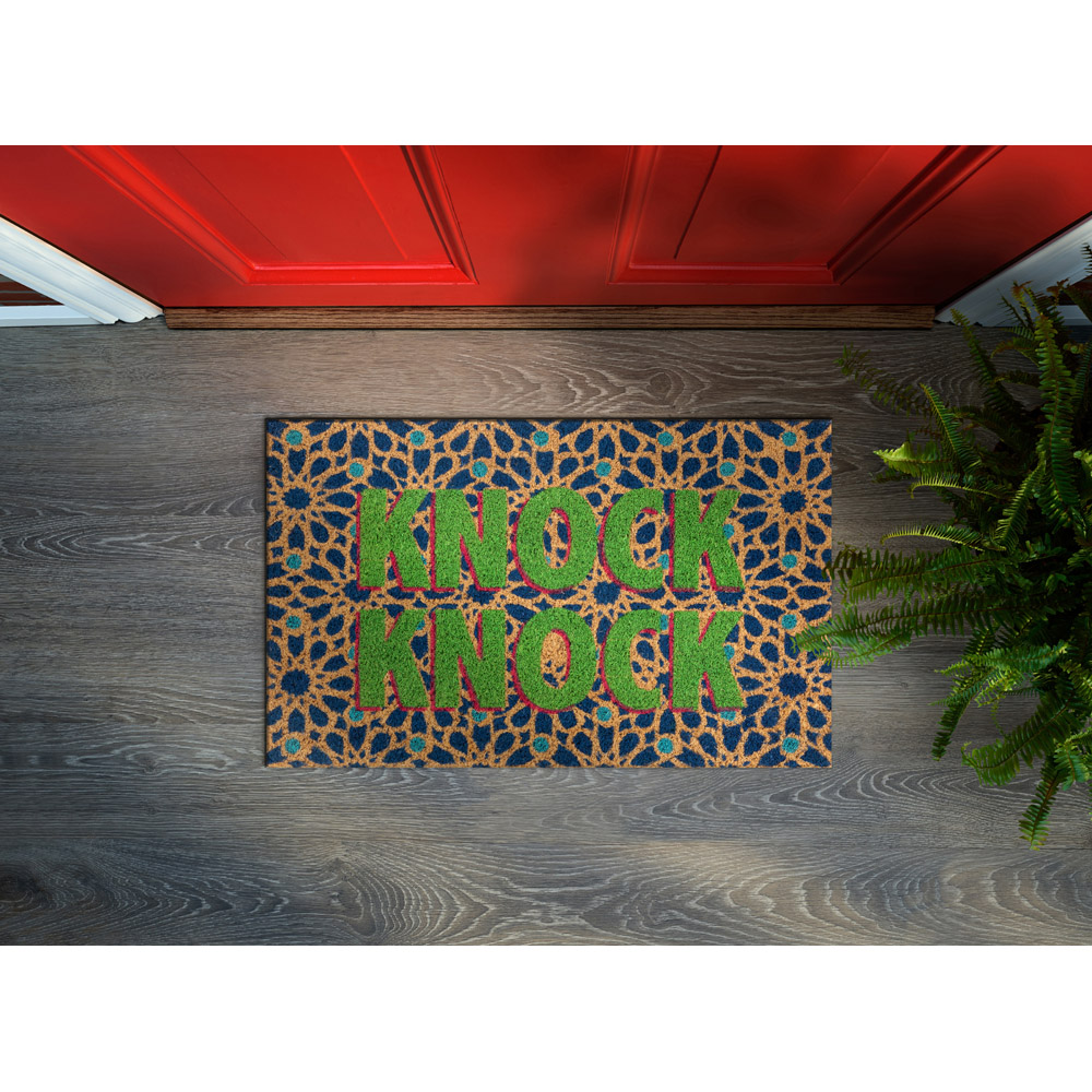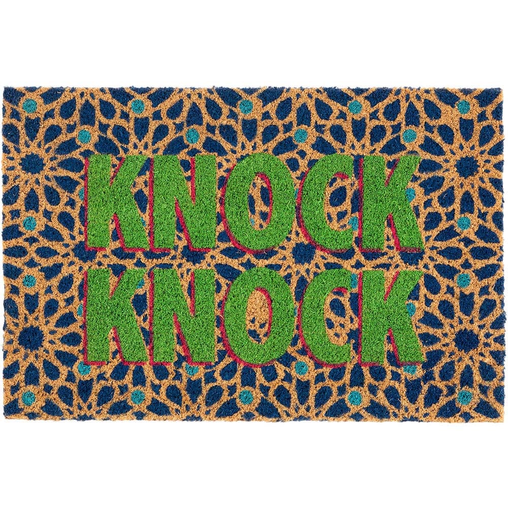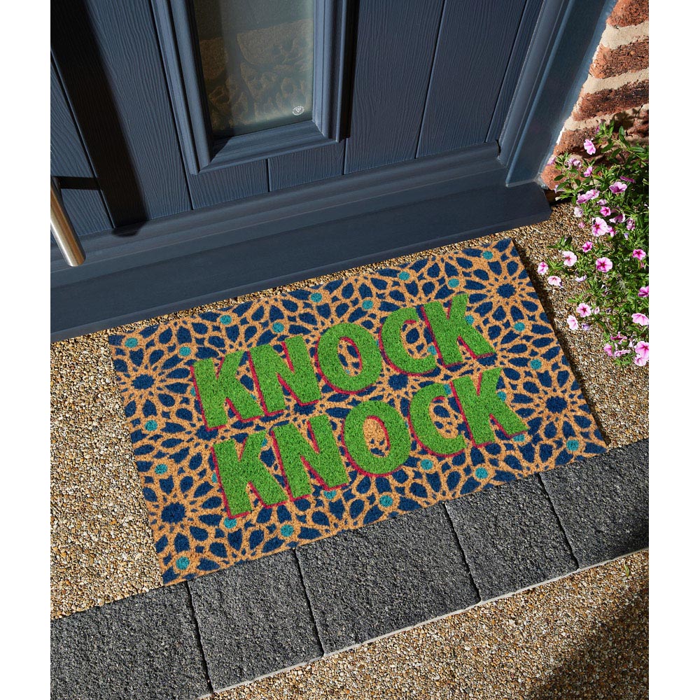 Brighten up your entryway with the Astley Knock Knock Printed Natural/Multi Doormat, a cheerful addition to any home. Crafted from 100% natural coir, this doormat not only adds a splash of colour but also excels in functionality. Its coir bristles are perfect for scraping off dirt from shoes, while the robust PVC backing ensures the mat stays in place, protecting your floors from moisture and debris. The stylish design of this doormat complements any decor, making it a practical yet decorative choice.