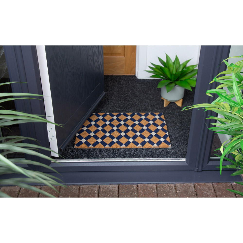 Bring a touch of classic elegance to your doorstep with the Astley Tile Printed Neutral Doormat. Featuring an intricate tile pattern in navy and cream, this doormat not only enhances the aesthetic of any entryway but also offers practical benefits. Constructed from durable coir and backed with PVC, it ensures excellent dirt-trapping capabilities and slip resistance, making it an ideal choice for those who value both style and functionality.