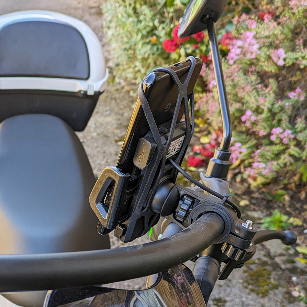 Uplift your daily commute experience with the Eskuta Tech Bar Phone Holder with Charging. This sleek tech bar attaches to your handlebars, providing a perfect fit for a clutter-free ride. Equipped with a dedicated GPS holder, a convenient phone holder charging unit, and a USB charging port, it ensures your devices stay powered and within reach while you navigate. Please note that this product includes a curved tech bar attachment, GPS holder and USB charging port only and does not include any other parts shown in the image.