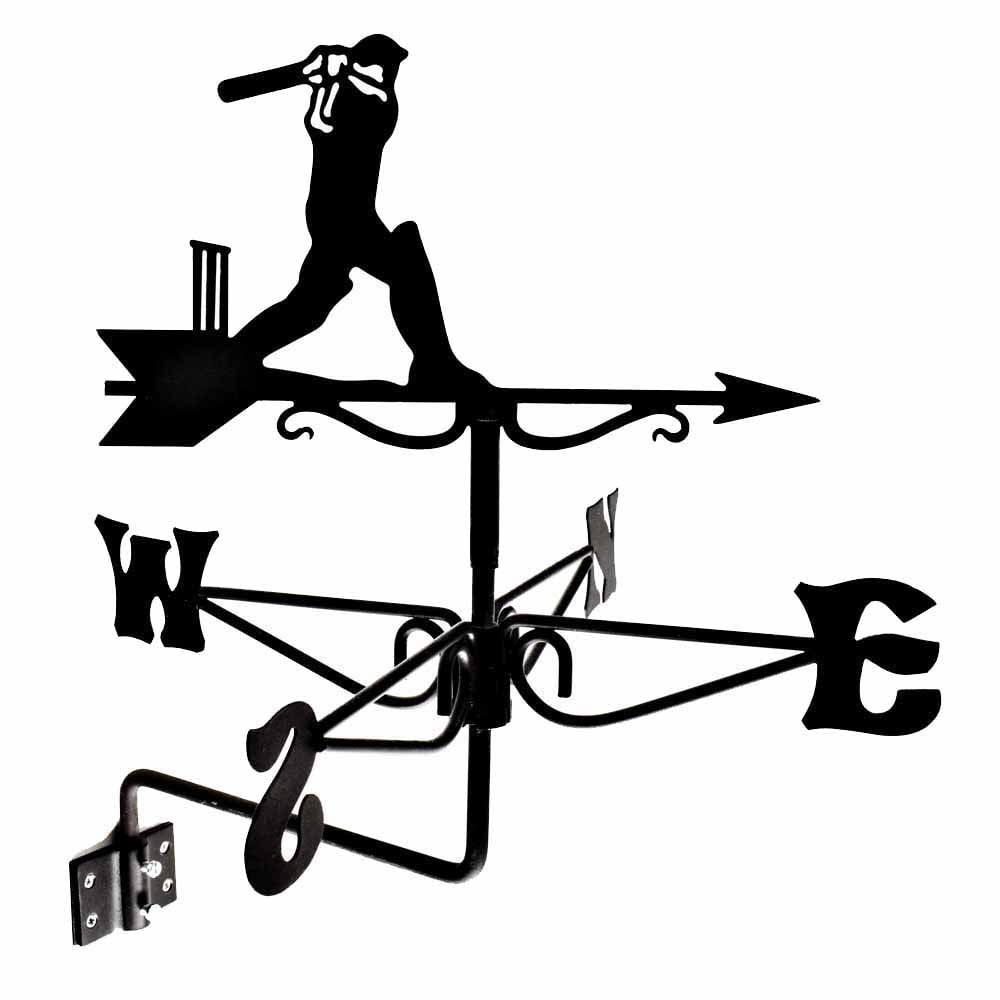 Cricketer Black Mini Weathervanes are ideal for fitting to garden sheds, small outbuildings, fence posts or gazebos. Not only decorative, but the weathervane is also a practical and effective wind direction indicator. The weathervane made from sheet steel with a steel rotation rod has an exterior quality black powder-coated paint finish which protects the steel and provides a sleek, durable surface. To refresh the paint and extend the life of your weathervane, apply a coat of Hammerite from time to time. Supplied with a universal fixing kit which includes a backplate (10.5 x 4.9cm), choice of mounting brackets and screws, which are suitable for use in wood or masonry. Use the Z-bracket for horizontal/eaves fitting or the L-bracket for vertical mounting. The fixing kit is also black powder-coated steel. Easy to assembly and fit, Mini Weathervanes come with instructions and a decorative box, making them ideal as gifts. This weathervane is a must-have for cricket enthusiasts, portraying a batting cricketer in the crease (the “safe” area in front of the wicket). Approximate Dimensions (cm): Overall: 38 (W) x 50 (H). Cricketer: 31.5 (W) x 24.5 (H).