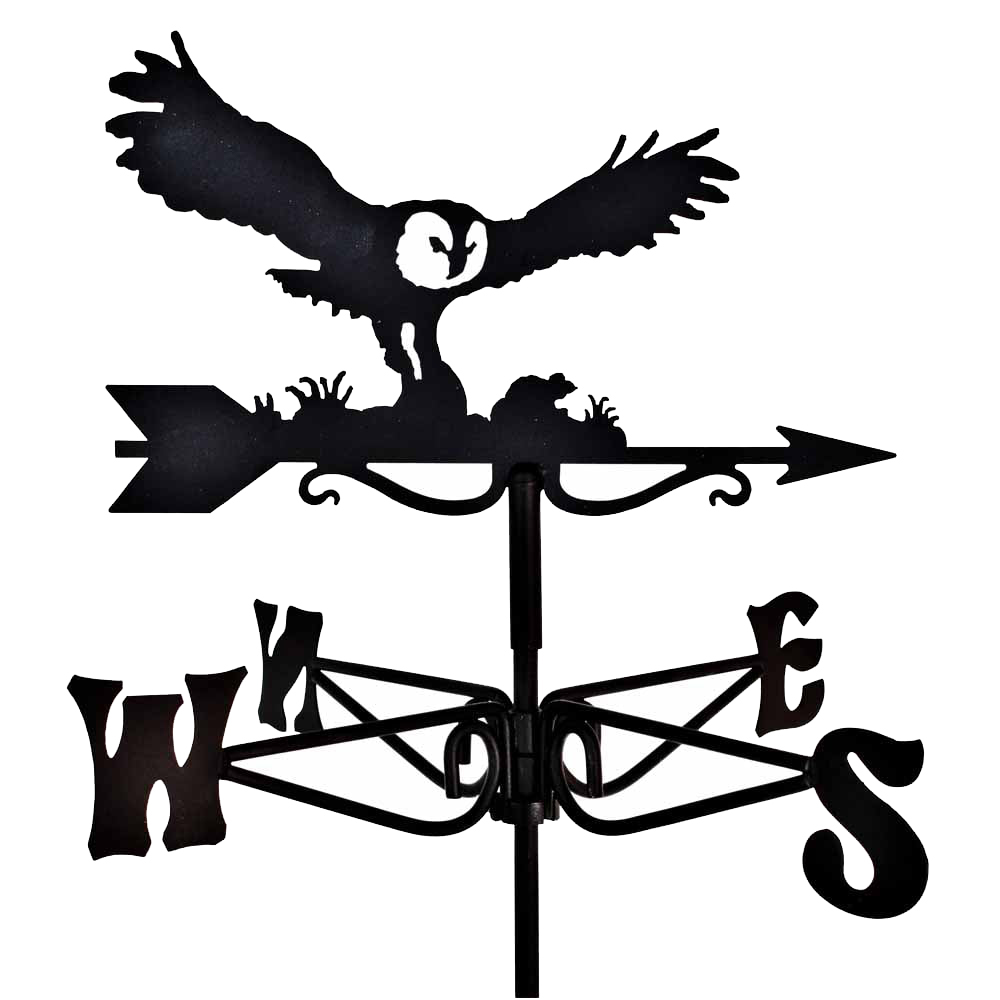 Owl and Mouse Black Mini Weathervane is ideal for fitting to garden sheds, small outbuildings, fence posts or gazebos. Not only decorative, but the weathervane is also a practical and effective wind direction indicator. This weathervane made from sheet steel with a steel rotation rod has an exterior quality black powder-coated paint finish which protects the steel and provides a sleek, durable surface. To refresh the paint and extend the life of your weathervane, apply a coat of Hammerite from time to time. Supplied with a universal fixing kit which includes a backplate (10.5 x 4.9cm), choice of mounting brackets and screws, which are suitable for use in wood or masonry. Use the Z-bracket for horizontal/eaves fitting or the L-bracket for vertical mounting. The fixing kit is also black powder-coated steel. Easy to assembly and fit, Mini Weathervanes come with instructions and a decorative box, making them ideal as gifts. This beautiful weathervane depicts an owl with wings outstretched soaring above a mouse! Approximate Dimensions (cm): Overall: 38 (W) x 48 (H), Owl: 31.5 (W) x 22.5 (H).