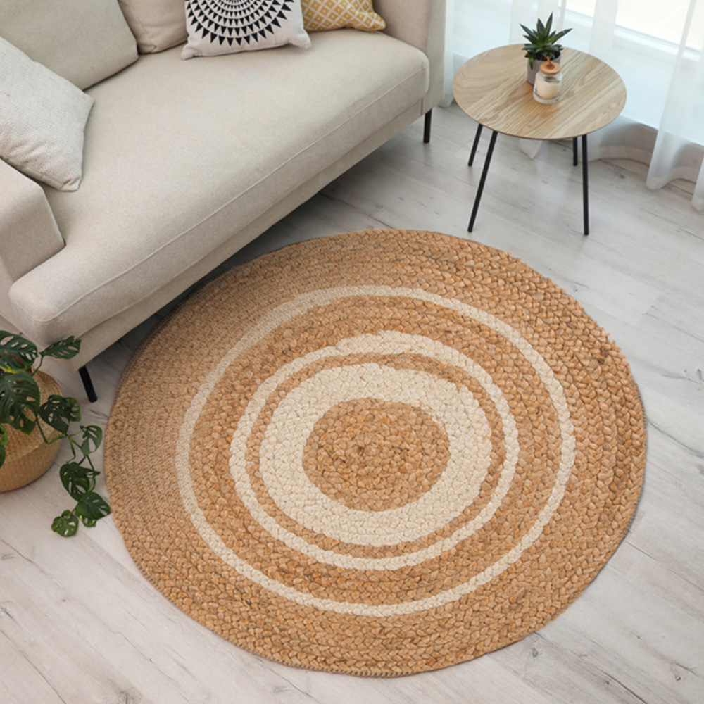 Enhance your floors with the Esselle Home Altrincham Bleached Jute Circle Rug 90 x 90cm. This Altrincham circle rug is from the Naturelle collection. It is a staple to have in any room with a simple design featuring circles, carefully handwoven by expert craftsmen. The ethos of the Naturelle Collection uses natural materials to create exquisite pieces, such as this classic rug. This braided jute rug is reversible and hard-wearing, suitable for heavy use indoors or even sheltered outdoor use.