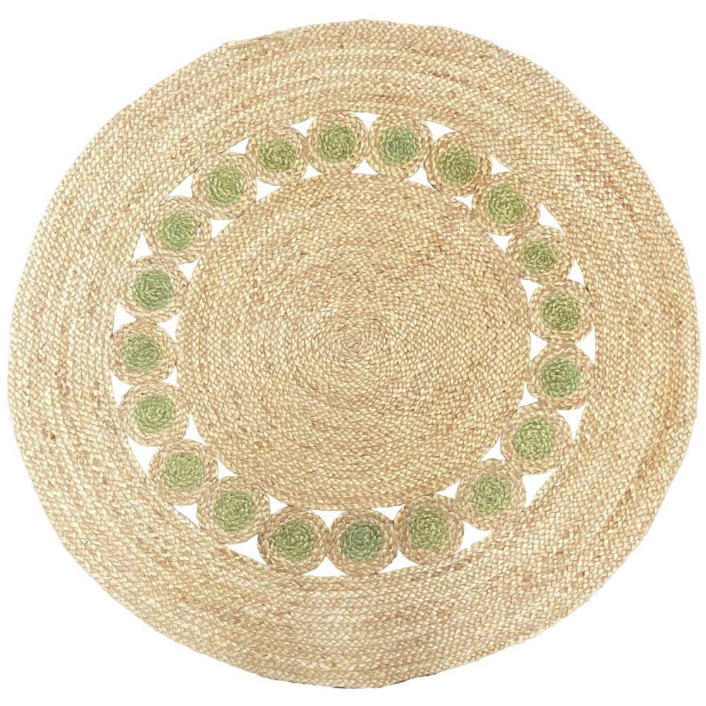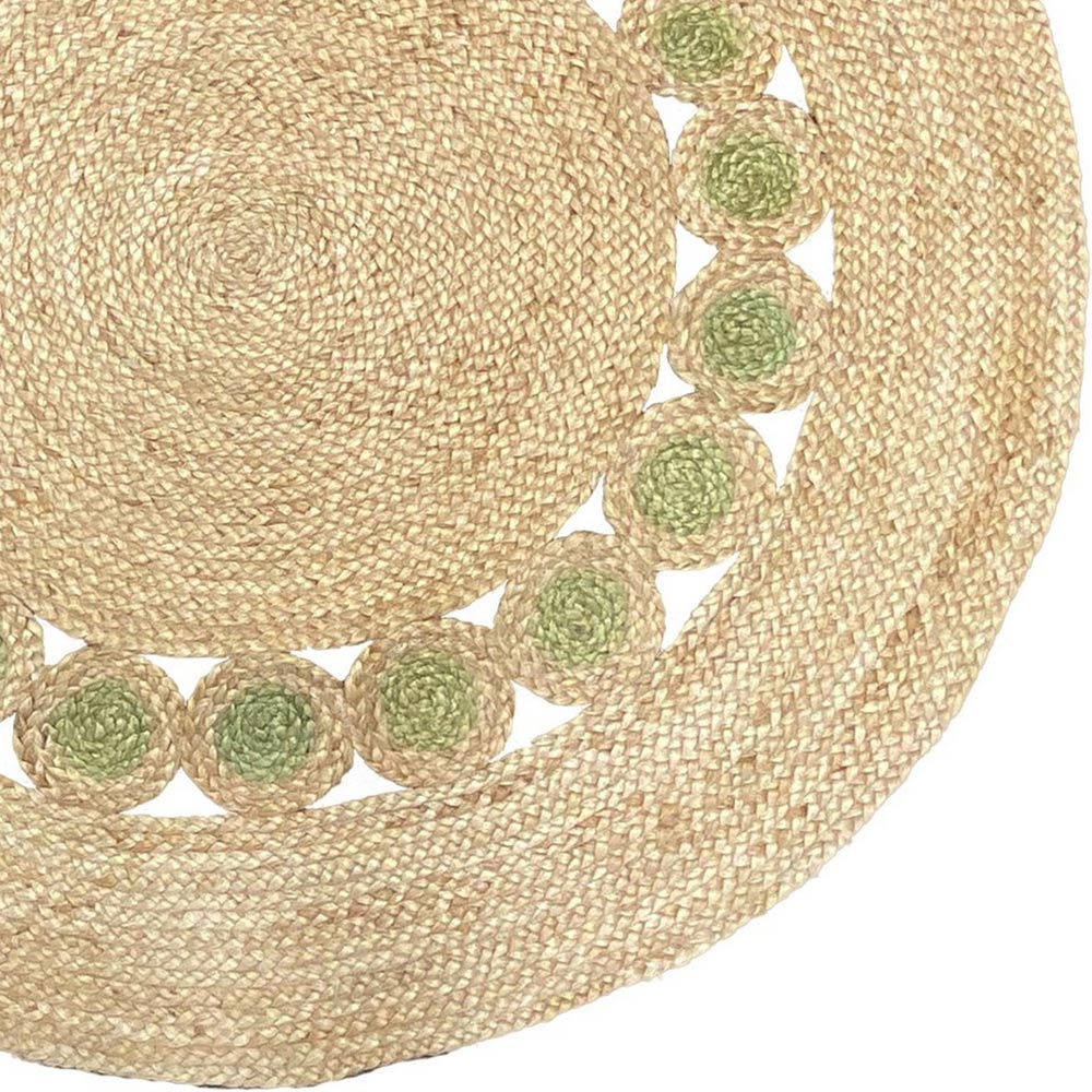 Embrace the charm and grace of the Esselle Prestwich Olive Braided Round Rug 140cm from the Naturelle Collection, a delightful display of expert craftsmanship. Carefully handwoven by our skilled artisans, this rug features smaller circles stitched together, creating a playful and visually appealing design that catches the eye. As with all Naturelle pieces, this rug is made with natural materials, embracing eco-friendliness and sustainability in every fibre. Crafted with jute, the rug is a prime example of a hard-wearing and durable floor covering. Its reversible feature ensures that you can switch up your décor with ease, giving you two styles in one rug. Whether indoors or in a sheltered outdoor area, this rug remains resilient and ready to withstand heavy use. Size: 140 x 140cm.