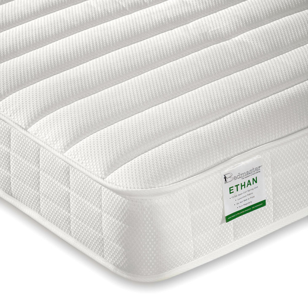 The Bedmaster Ethan Single Low Profile Coil Sprung Mattress is a 13.5 gauge open coil mattress that is micro-quilted for added comfort. It is suitable for bunk beds and guest beds, and can be turned and rotated for even wear. This mattress has been tested to meet the BS7177 standards and has a depth of 15.5cm.