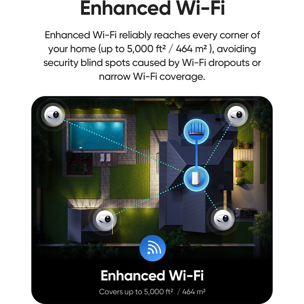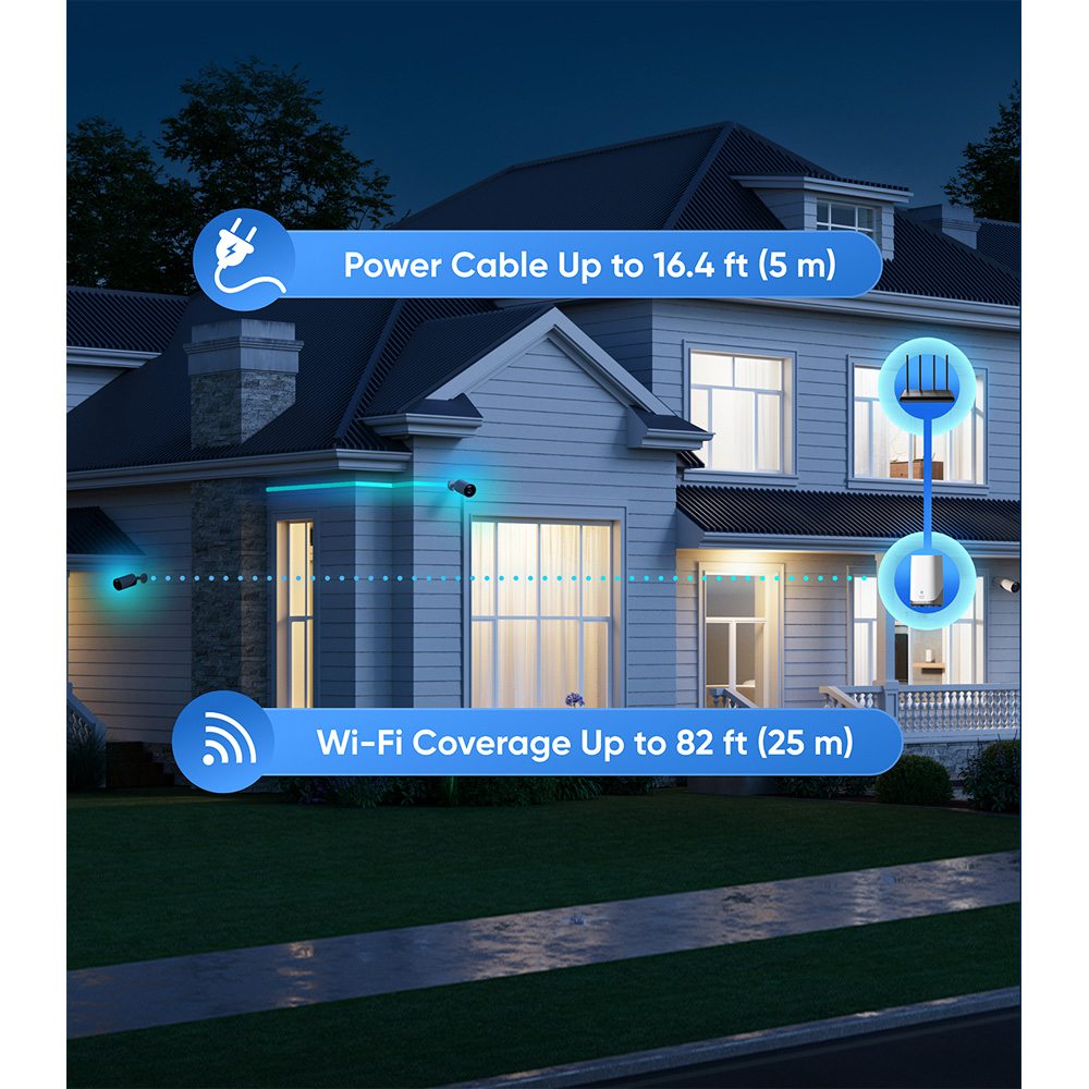Capture every detail in stunning 4K HD, day or night. With this ultra-sensitive sensor and colour night vision, you'll enjoy crystal clear, vibrant footage even at night. Experience swift and effortless event reviews with Cross Camera Tracking. Unlock the true potential of your security facial recognition differentiates between family and strangers. Enjoy the convenience of plug-in power with the 5 m (16.4 ft) cable and enjoy uninterrupted 24/7 recording. No power worries, just seamless security at your fingertips. Stable Wi-Fi coverage that reaches every corner of your home (up to 464 m² / 5,000 ft²), avoiding security blind spots caused by Wi-Fi dropouts or insufficient Wi-Fi coverage. Wireless connectivity works at distances up to 25 m (82 ft) between cameras and HomeBase 3, allowing easy DIY installation anywhere power is available. Save Months of 24/7 Security Footage With eufyCam E330, your data is protected with advanced encryption, and you're always in control. HomeBase 3 offers expandable storage up to 16 TB, all for no monthly fee.