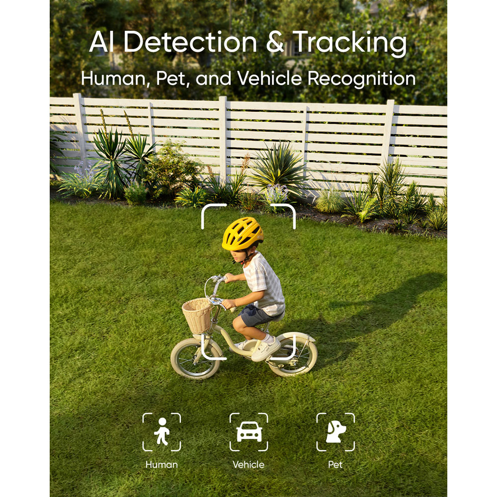 Enhance your home security with the eufy E340 Floodlight Camera. This floodlight camera provides advanced, all-around home security with 360° camera coverage that tracks detected individuals, ensuring no movement goes unmonitored. This dual-camera system combines a telephoto lens to capture details up to 50ft away and a wide-angle lens with 3K resolution for a complete view, plus 8x digital zoom for enhanced clarity. Designed for dependable performance, it connects seamlessly via dual-band Wi-Fi 6 for fast, stable coverage on both 2.4 GHz and 5 GHz networks. The 2000-lumen floodlight delivers peak brightness with adjustable settings for motion-activated or ambient lighting, doubling as both light and security guard. The expandable storage option lets you add a microSD card (up to 128 GB, not included) or up to 16 TB with HomeBase S380 (sold separately), ensuring a record of every event. Please note: Compatible with HomeBase S380 with firmware version V3.3.2.6 and above.