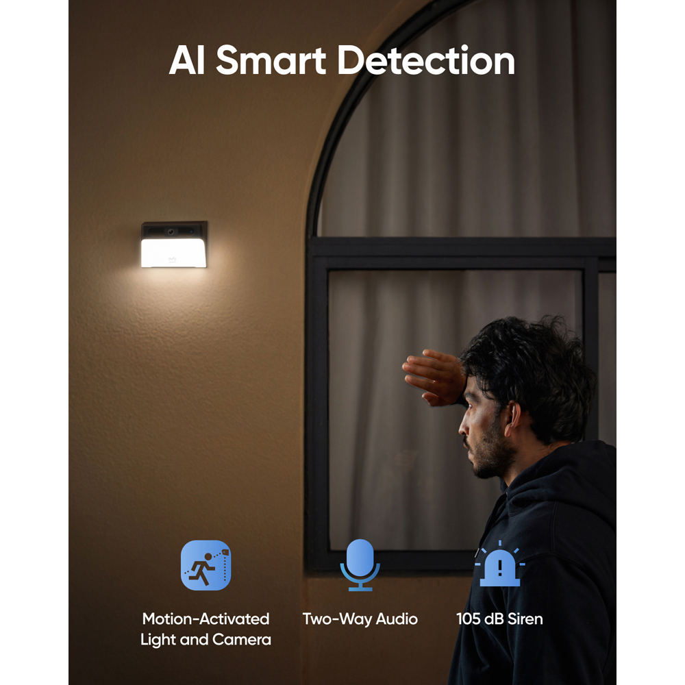 Elevate your home security with this eufy S120 Wall Light Solar Camera. This innovative product features a camera and wall light that not only illuminates outdoor space with 300 lumens of brightness but also monitors the home. The light automatically activates with motion, providing comfortable illumination that won’t disturb you and your neighbours at night. Powered by an integrated solar panel, this device requires just two hours of sufficient sunlight to supply more than a day’s worth of power. The built-in battery provides up to 60 days of battery life when in energy-saving mode. It provides 2K HD live streaming and footage, enhanced by colour night vision for sharp, vivid recordings even in low light. The camera has a PIR sensor to detect motion 25 ft away and sends real-time notifications via the eufy security app. The eufy security app allows you to speak to people via two-way audio, sound the 105 dB siren, and activate bright lights to scare away intruders, wherever they are. It is a one-time purchase with no monthly fees or hidden costs, offering local storage for event footage for up to 60 days.