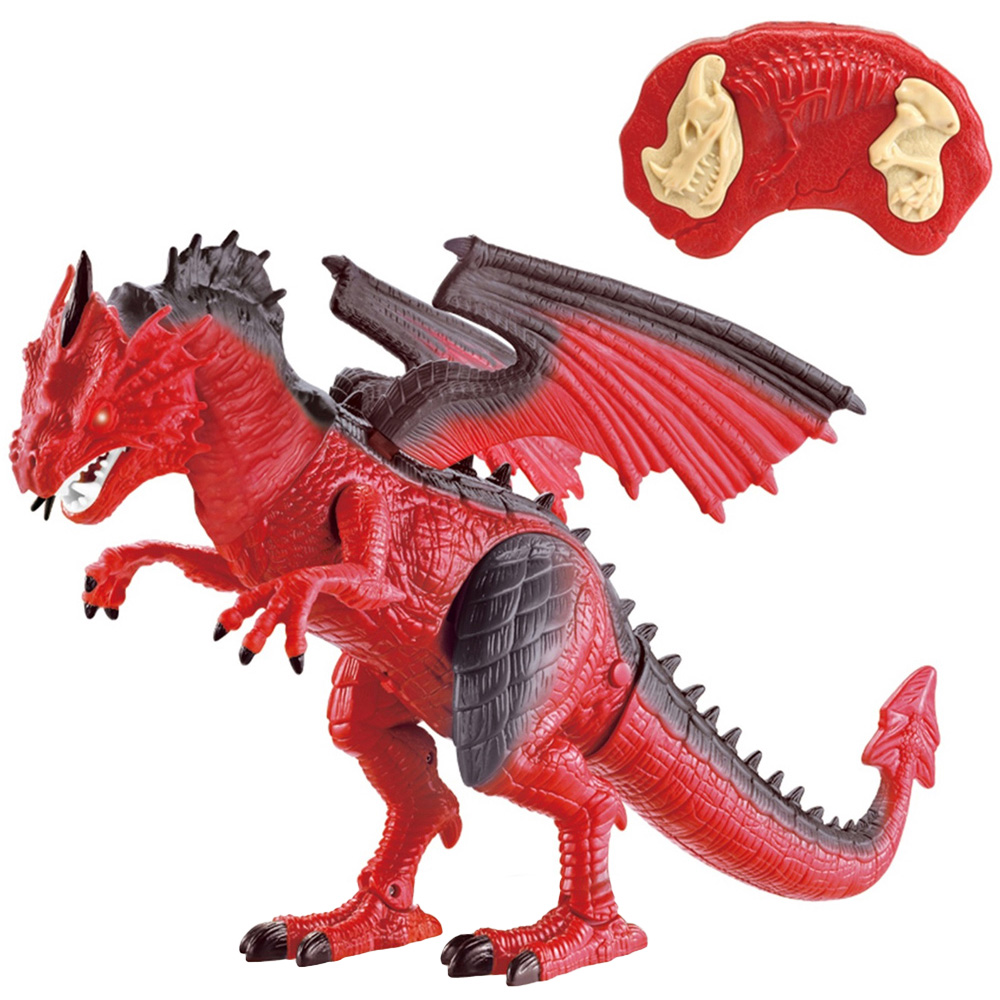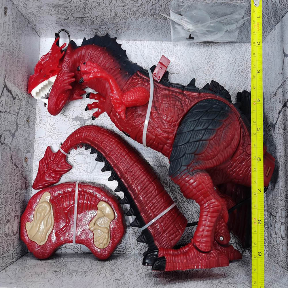 Delight your child with this Eurotrade T-Rex Dinosaur and Dragon Remote Control Toy. This toy features sound and light effects, making it an immersive experience for children. The multi-functional remote control allows kids to manoeuvre the dinosaur, making it walk, roar, and even simulate fire breathing by adding water through the lid on its head. The toy includes flappable wings and an atomization button for added excitement, while the dinosaur’s walking motion and roaring sound enhance the play experience. Assembly is straightforward, requiring minimal effort to attach the tail and wings. It operates with three AA batteries (not included), as does the infrared remote control. Ideal for children aged three and up, this toy combines fun with imaginative play