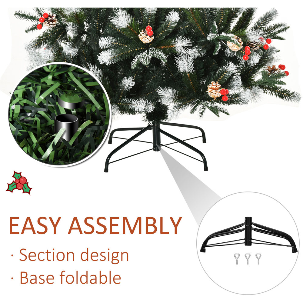 Make your festive season decor perfect with the Everglow Green Artificial Snow Dipped Pencil Christmas Tree. Colourful and bright, this pencil tree makes your Christmas extra special and beautiful. Also, it features snow flecks with a variety of red berries and pinecones scattered all over. Plus, it has 678 branches for a voluptuous look, with four differently-shaped leaves for a beautiful imitation. Easy to assemble, the tree can be set up in minimum time and has flame-resistance material so that you can place it next to fireplaces with peace of mind. The 6ft size is perfect for different room sizes and spaces, with a tall top branch for your topper. This tree comes complete with a removable base and foldable feet, which keeps the tree steady and stable. Size: 180 x 109cm.