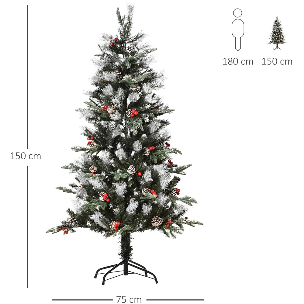 Everglow Green Pencil Snow Dipped Artificial Christmas Tree with Red Berries and Pinecones 5ft