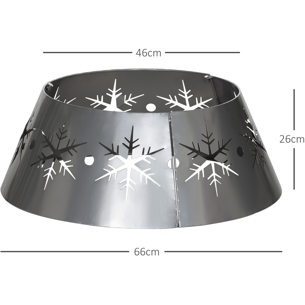 Elevate your holiday decor with the Everglow Hollow Snowflake Pattern Christmas Tree Base Cover. It features a chic silver finish and delicate hollow snowflake pattern, this charming Xmas tree base cover adds a magical touch while discreetly hiding your tree stand. Crafted from electrophoretic steel with a powder coating, it ensures your Christmas tree bottom looks sleek and festive season after season.