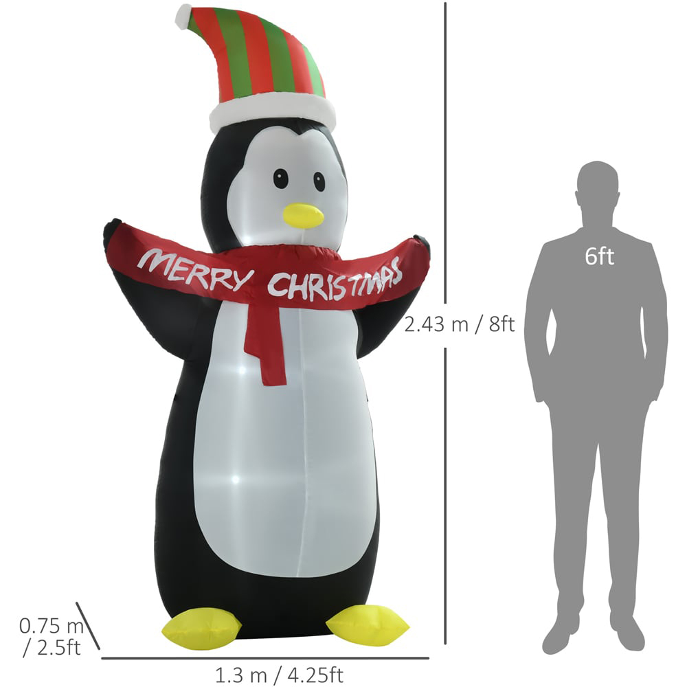 Decorate your home with fun this Christmas using the LED Inflatable Christmas Penguin Decoration from Everglow. This penguin wearing a Santa hat design is cute, and holding a 'Merry Christmas' banner is something everyone will love when they set their eyes upon it. Also, it features built-in LED lights to illuminate the area softly at night. Made from weather-resistant polyester, it is suitable and safe for both indoor and outdoor use. Plus, it comes with three guy ropes and six ground stakes to keep it in place. Size: H243 x W130 x D75cm.
