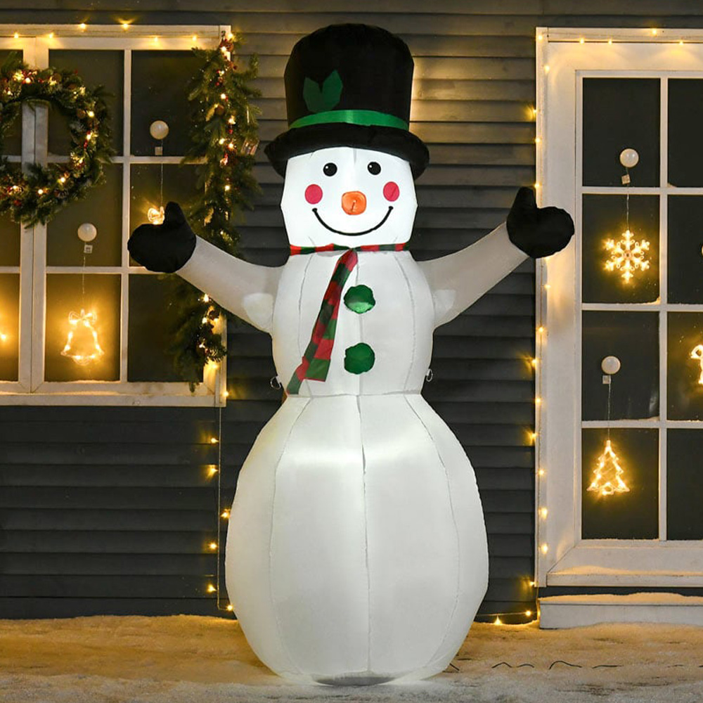 Create the ultimate animated, festive Christmas display in your yard this holiday season with Everglow's large 1.93m tall inflatable snowman wearing mittens, a hat and a scarf to create a cosy holiday ambience. Designed with ultra-durable polyester and featuring an internal white LED glow, this holiday display will create a festive focal point in your yard. The whole display self-inflates in minutes when plugged into any standard electrical outlet and deflates quickly into a compact unit for storage until the next holiday season.