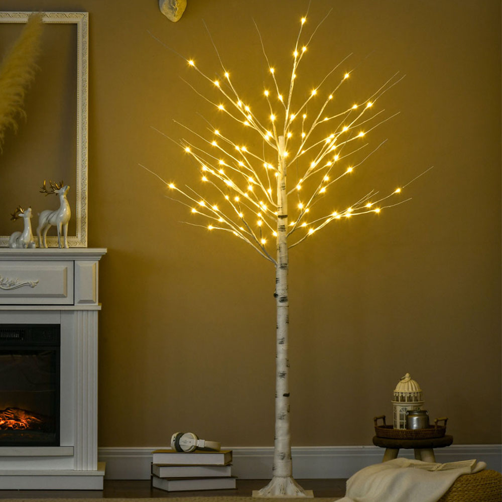 Make a beautiful addition to your indoors with the Everglow Artificial Lighted Birch Tree with 96 Warm Pre-Lit LEDs in white. Perfect for decors, this light tree is exactly what you need, it features a prelit design and helps you focus on DIY natural tree shape and putting ornaments on it. With realistic-looking leaves, the tree creates a natural atmosphere for your room and low maintenance is needed. Great for indoor and outdoor (covered) spaces, the light-up tree goes well with any kind of decor, such as homes, parties, weddings, patios, and more. Size: 180 x 22 x 22cm.
