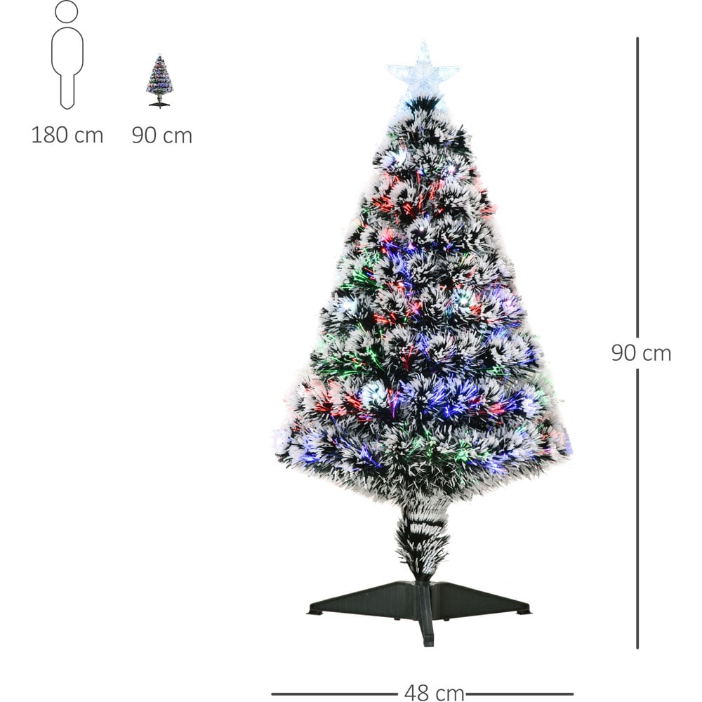 This holiday season, spend more time celebrating and less time maintaining and cleaning up with this 3ft Pre-Lit Artificial Christmas Tree from Everglow. With this particular model, built-in fibre optics and 12 LED lights complement each other in a beautiful sparkling display to give off an authentic holiday feel. Each fibre optic branch and LED light create a striking lighting display that makes this tree the centrepiece of the holiday. Standing at 3ft, these snow-dipped leaves, whose ends are painted white, create a unique winter atmosphere, making this snow Christmas tree an eye-catching ornament during the coming holiday. The full-body, dense tree shape is provided by 90 fluff plastic branch tips for a life-like look. Complete with a safe and sturdy base, it will make a fine addition to your festive decoration.