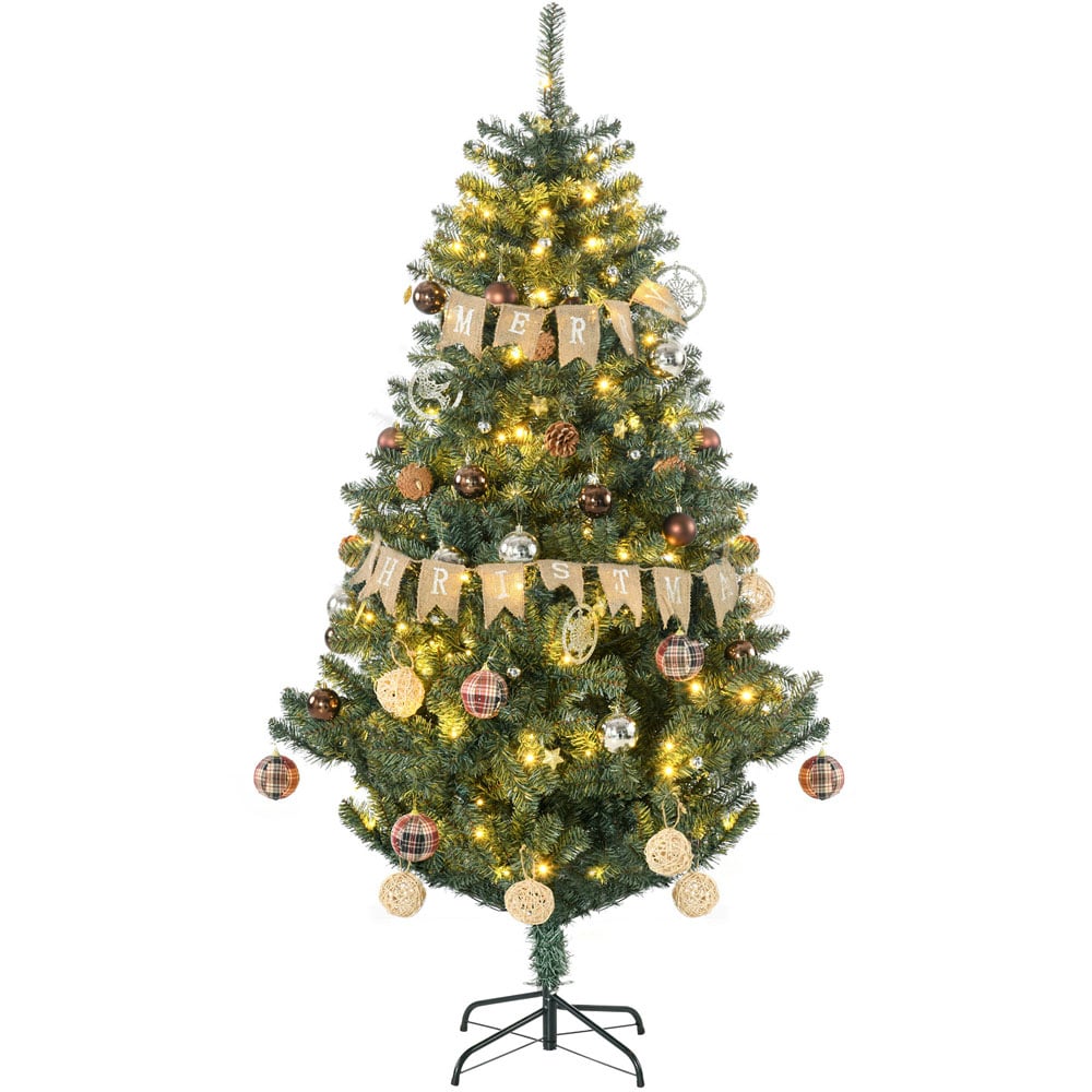 Everglow Warm LED Pre-Lit Green Artificial Christmas Tree with Decoration Banner Tag 6ft