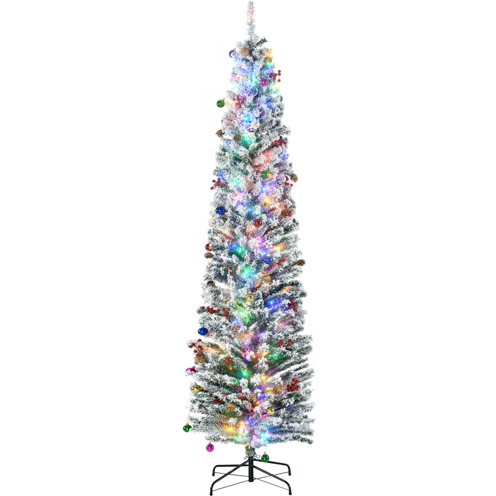 Make Christmas extra special for years to come with the Everglow Green Artificial Pre-Lit Christmas Trees with Warm LED Lights. Covered in berry clusters, pine cones and balls, this tree has lots of decorations, with the colourful LEDs providing the lighting - no need to worry about dressing it. Also, the tall and strong upright top branch allows you to add your own star or angel topper. Easy to assemble, the tree is formed of three pieces to fix quickly. Tough and durable, it has a PVC construction to make it a reliable long-term option. Plus, flame retardant means it won't catch on fire - for safety, keep away from naked flames. Dusted off with white specks to resemble snow, this is a truly beautiful and seasonal piece. Size: 225 x 53cm.