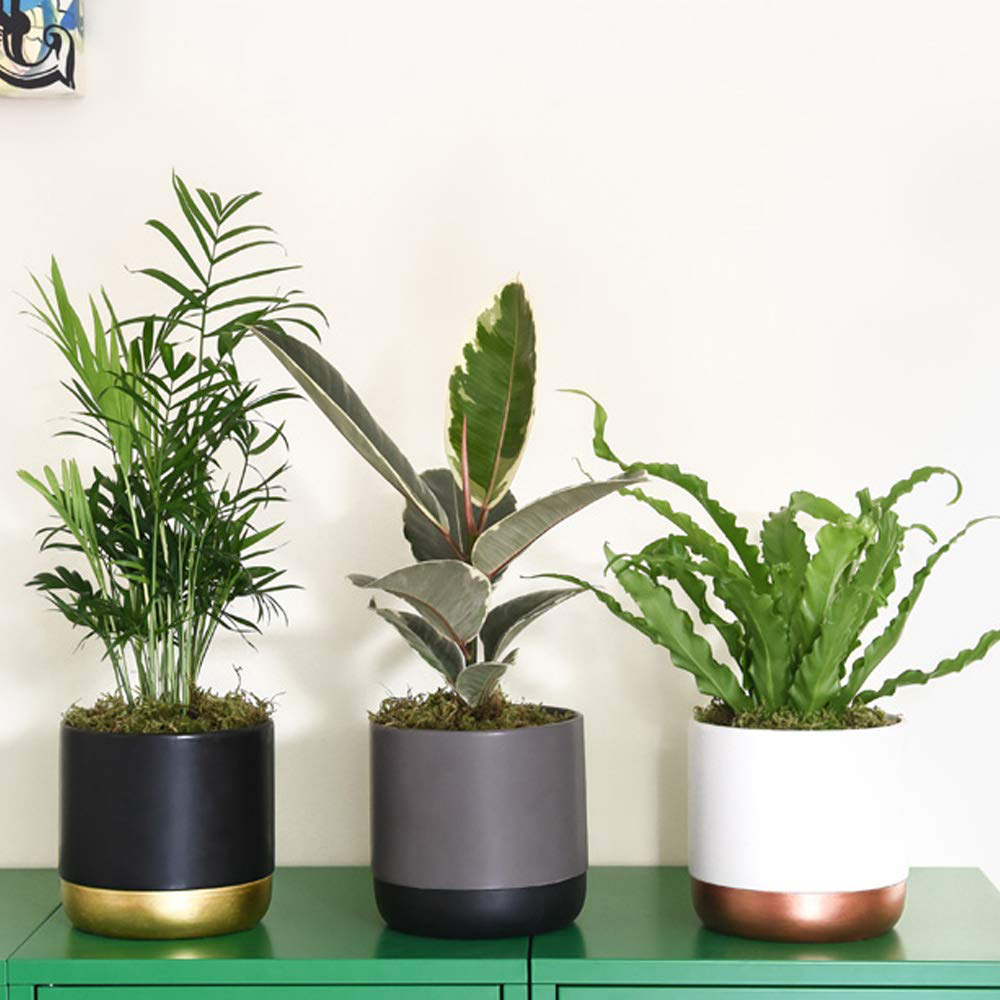 What an excellent way to liven up your indoor space and breathe energy back into your home! The Stunning foliage mix included in this collection ranges from the classically tropical fronds of the Madagascan dragon tree and the Chamaedorea palm to the luscious glossy and waxy leaves of the green on the corn and rubber plants. A brilliant but simple way to make your home feel more vibrant and alive. House plants delivered also make for fantastic gifts! Please note: Some houseplants are toxic or harmful to pets if ingested. If you believe your pet has consumed a poisonous plant then seek veterinary attention immediately. Take a sample of the plant with you. The mix of green houseplants in the Scandi collection have their own ideal light exposure but will all feel at home on a sunny windowsill or with a good source of indirect light. Each plant will have its own feeding and watering requirements, the specific requirements for each will be provided upon delivery. Approx 20 40cm Tall depending on variety. Images shown are for guidance only and show the expected results of plants upon maturity. Different growing conditions might vary results. Image may be included for illustration of supply but can vary due to seasonality changes e.g. deciduous plants loose leaves in colder months. Decorative pots are not supplied.