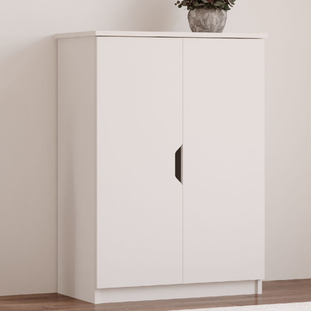 Organise your footwear with the Evu Bergen 2-door White Shoe Cabinet. Featuring two doors with shelves within, this unit offers ample space to keep up to 14 pairs of sneakers, heels, shoes or more. Also, it comes with a cut-out handle for easy opening and closing of the unit. Plus, easy to use, the cabinet is delivered flat-packed and may require assembly.