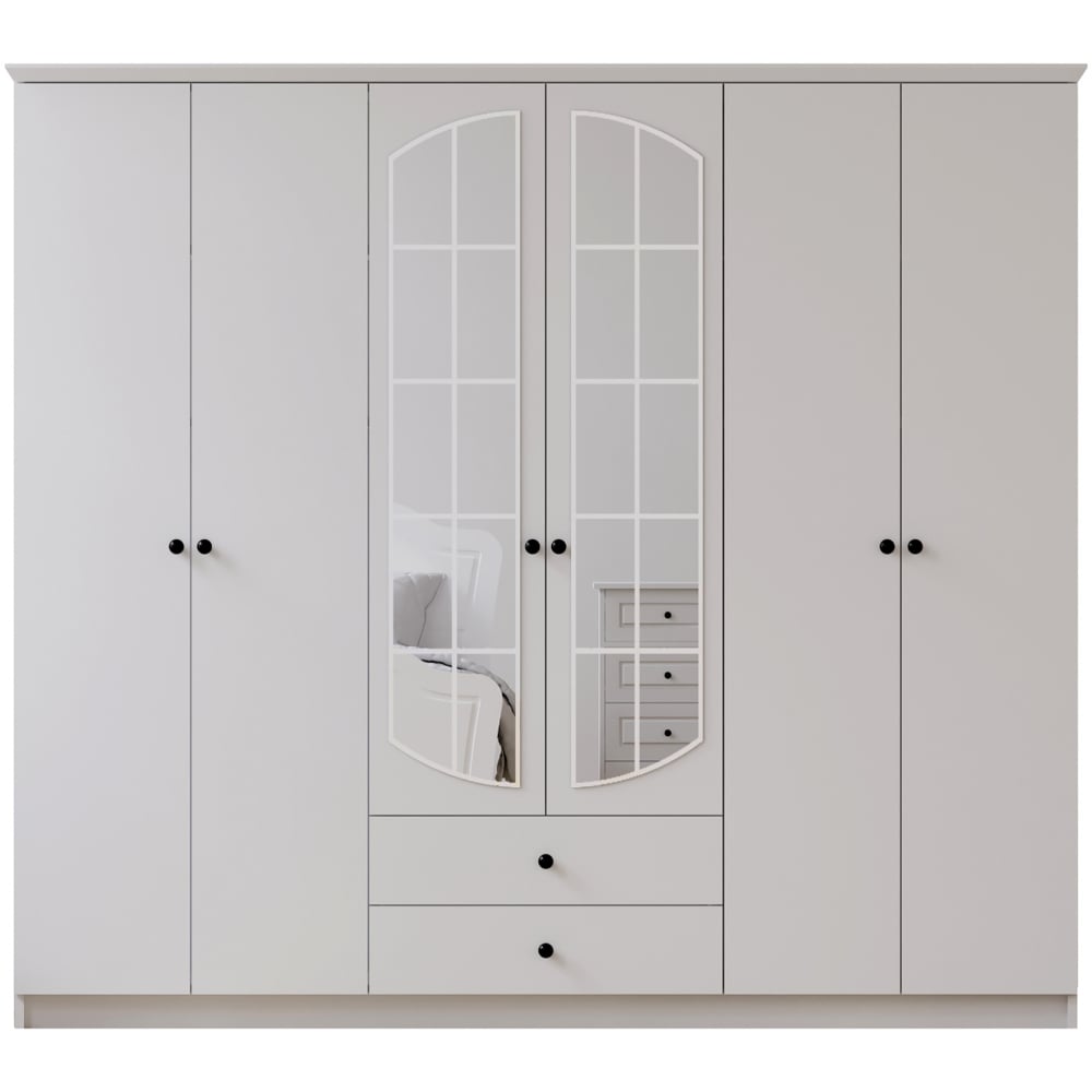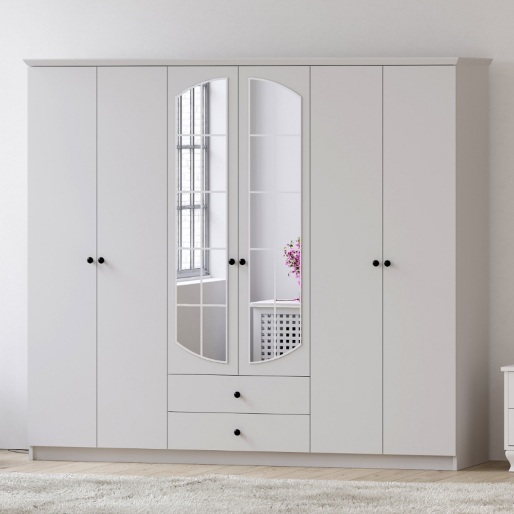 Evu ECU 6 Door 2 Drawer White Mirrored Wardrobe