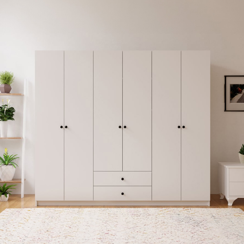 Evu ECU 6 Door 2 Drawer White Wardrobe
