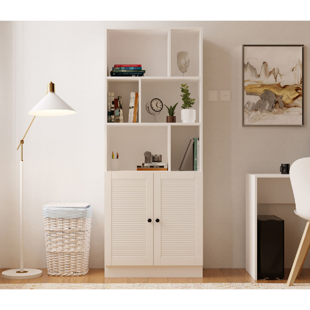 Add practicality and style to your space with the Evu Elise 2 Door 6 Shelf White Bookcase. Featuring two doors and six shelves, this unit offers ample storage and display space. Easy to use, the unit is delivered flat-packed and requires assembly. Also, its French-inspired design ensures it blends effortlessly with a range of interiors. Plus, solid and durable, the bookcase is finished with CNC techniques to make a reliable choice.