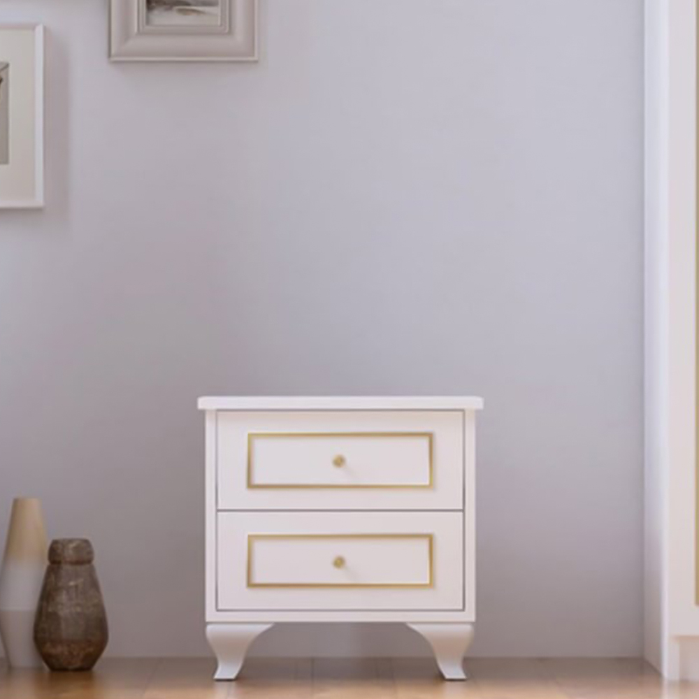 Make your home decor more pleasant and practical with the Evu MARIE Bedside Table. This white colour bedside table has impressive gold-colour detailing with sleek handles and sturdy legs for stability and support. It features a smooth top for your alarm clock or favourite display item and two storage drawers for keeping your accessories. it is designed to complement all types of modern and traditional interior spaces. Please note: This bedside table is delivered flat packed, assembly required.