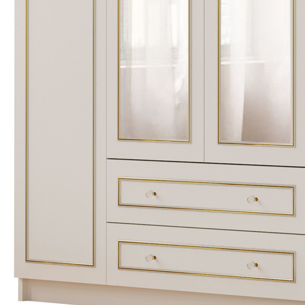 Evu MARIE 4 Door 2 Drawer Gold and White Mirror Wardrobe