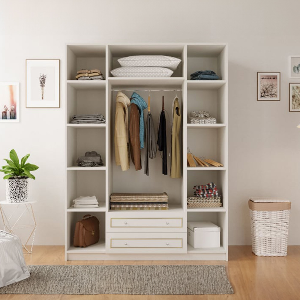 Elevate your home decor and make it more beautiful and practical with the Evu MARIE 4 Door 2 Drawer Gold and White Mirror Wardrobe. This white colour wardrobe has impressive gold-colour detailing with sleek handles. It features four elegantly designed doors with a hanging rail section and nine enclosed shelves for keeping your clothes and essentials. It also features two storage drawers for all your accessories. This wardrobe is designed to complement all types of modern and traditional interior spaces. Please note: All boxes will be sent out by the next day with a white-glove two-man service and will be delivered to your room of choice. UK Mainland: Next day or two days. Remote areas two-five days.