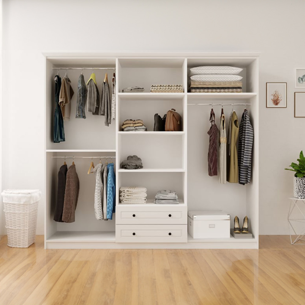 Make a classy addition to your living space with this VOLET Wardrobe by Evu. Finished with a CNC process, this white-coloured wardrobe features a French-inspired design and a tapered style cornicing with a matt finish. It features six doors with mirror doors and two drawers complemented by inner shelves and a hanging rod with simple round handles. The wardrobe offers plenty of storage space for your clothes and other essentials. This wardrobe can perfectly enhance your interior with its membrane coated from the MDF board. Please note all boxes are sent out with next day/ white-glove two MAN service and delivered to your room of choice. Also, in the UK mainland, the next day or two days and in remote areas, two to five days.