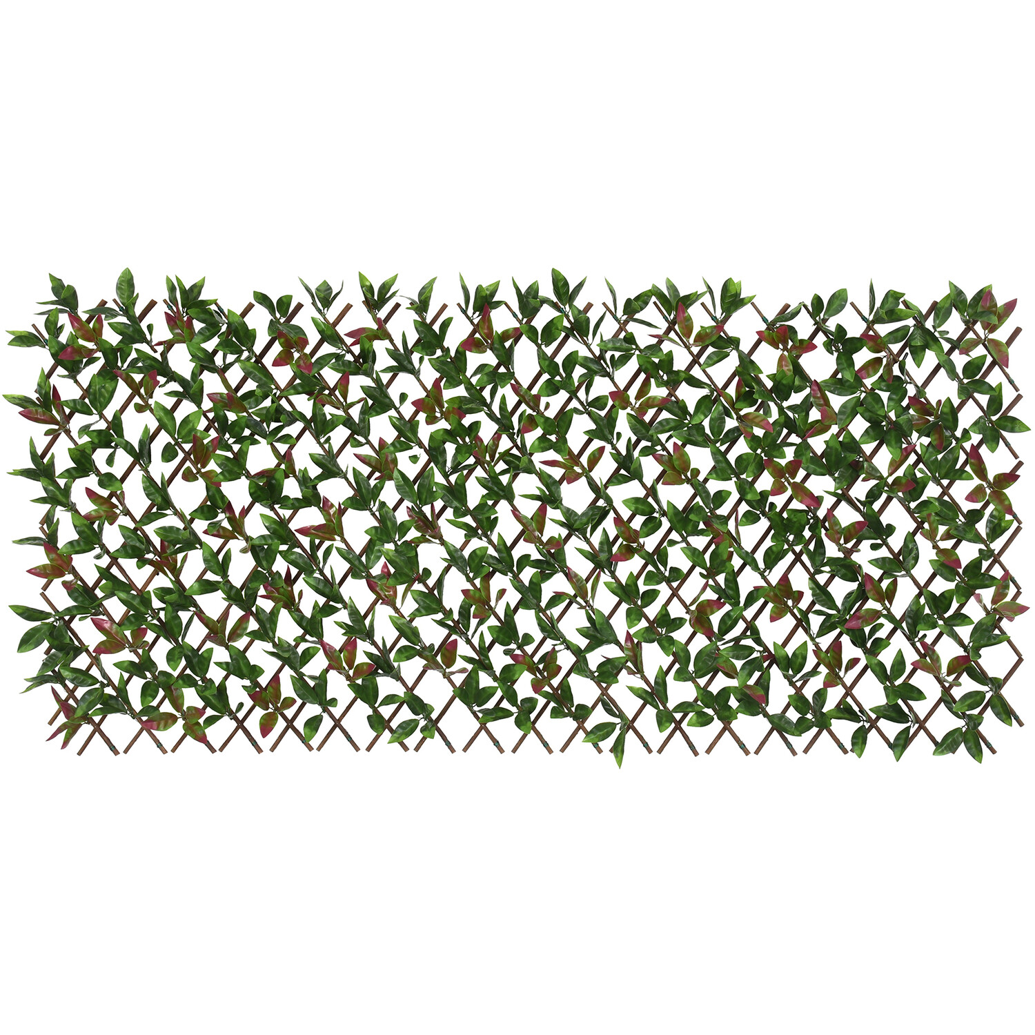 Breathe life into your outdoors with the beautiful Expandable Red Robin Leaf Trellis. This trellis features bright-green plastic leaves with a hint of red presented over a natural wicker framework. Ideal for adding a touch of greenery, it is simple to install and requires low maintenance. Perfect for covering up unsightly spots or adding privacy to your space, this trellis makes a practical yet stylish addition to balconies, patios, terraces and gardens.