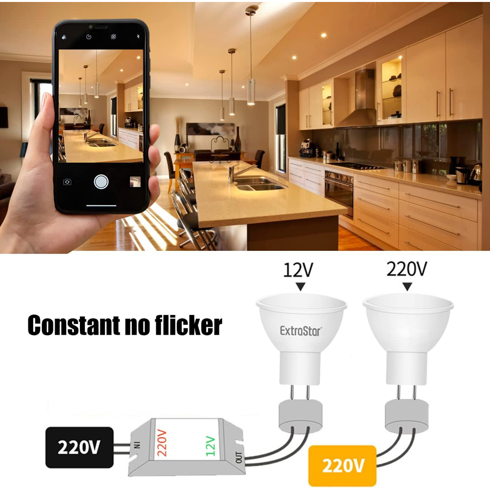 Transform your space with the ExtraStar 10 Pack Warm White 3000K 6W MR16 LED Bulbs, perfect for spotlighting, downlighting, and accent lighting in homes, offices, and commercial areas. Emitting a cosy 3000K glow, they create a comfortable and well-balanced ambience. These bulbs are designed as direct replacements for traditional halogen MR16 bulbs, providing bright, flicker-free light while using significantly less energy. With a long lifespan and low heat output, they ensure durability and cost savings. The standard MR16 fitting allows for quick and easy installation, making them a reliable and eco-friendly lighting choice.