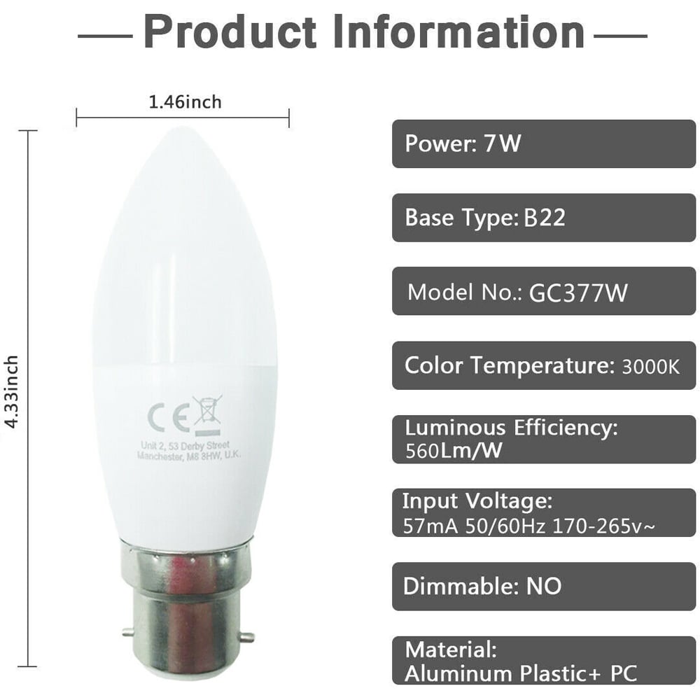 - Compatible with B22 cap