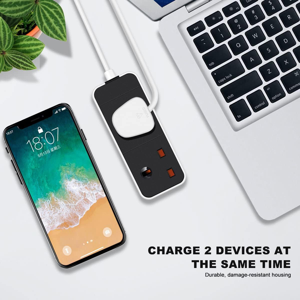 ExtraStar 13A 3m 2 Socket Black Extension Lead