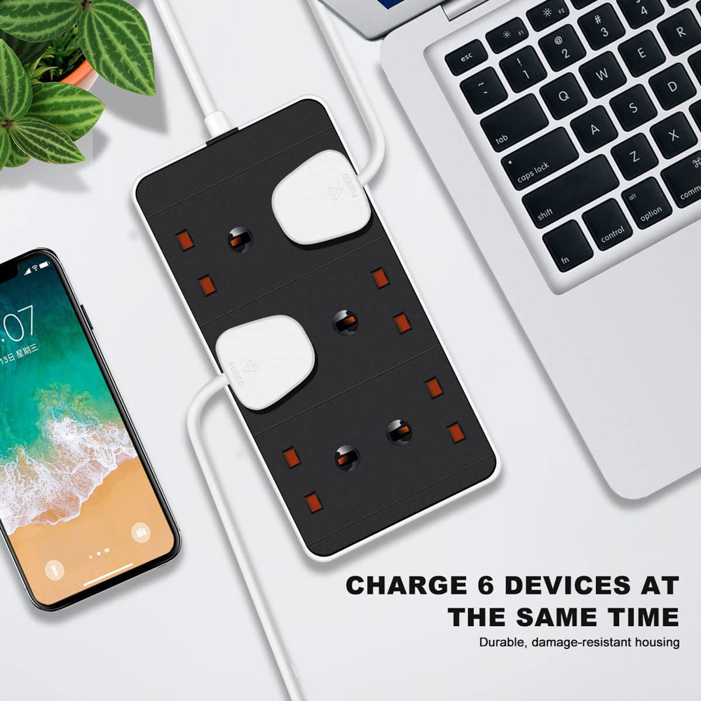 ExtraStar 13A 3m 6 Socket Black Extension Lead