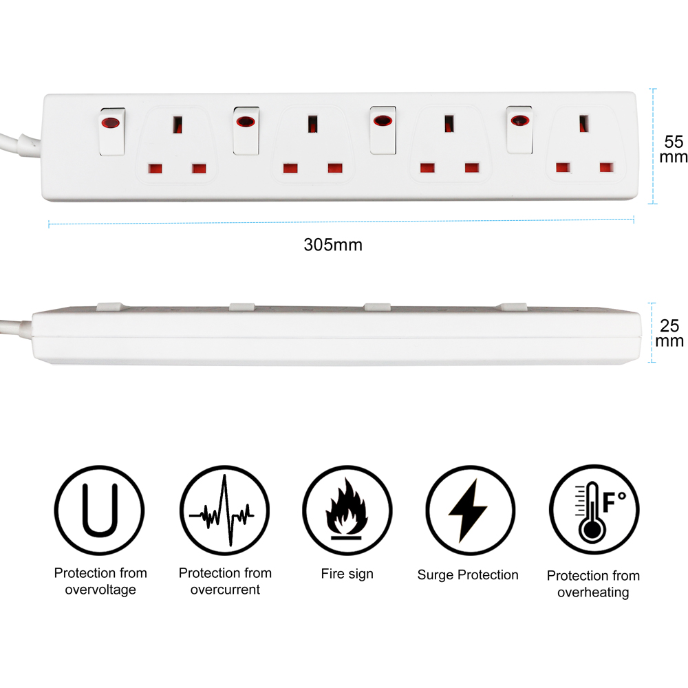 Extrastar 4-Gang Individually Switched Extension Lead (5m, white) is a practical and efficient power solution for home, office, or workspace use. Designed for convenience and safety, it features four sockets, each with its own individually switch, allowing you to control devices independently and reduce unnecessary power consumption. The built-in power indicator ensures a clear visual status when the extension lead is in use. With a durable 5-metre cable, it provides flexibility while keeping your space organised.