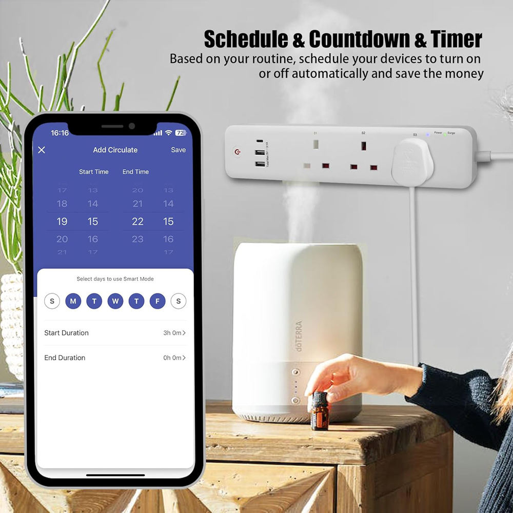 Offering advanced functionality and convenience, the ExtraStar 3 Gang Smart Extension Lead is perfect for modern homes and offices. Equipped with three power sockets, 2 USB-A ports, and 1 USB-C port, this extension lead supports multiple devices simultaneously. The 1.4-meter cable provides flexibility, while the Wi-Fi smart control enables remote operation via a smartphone. Perfect for managing your power needs efficiently and conveniently.
