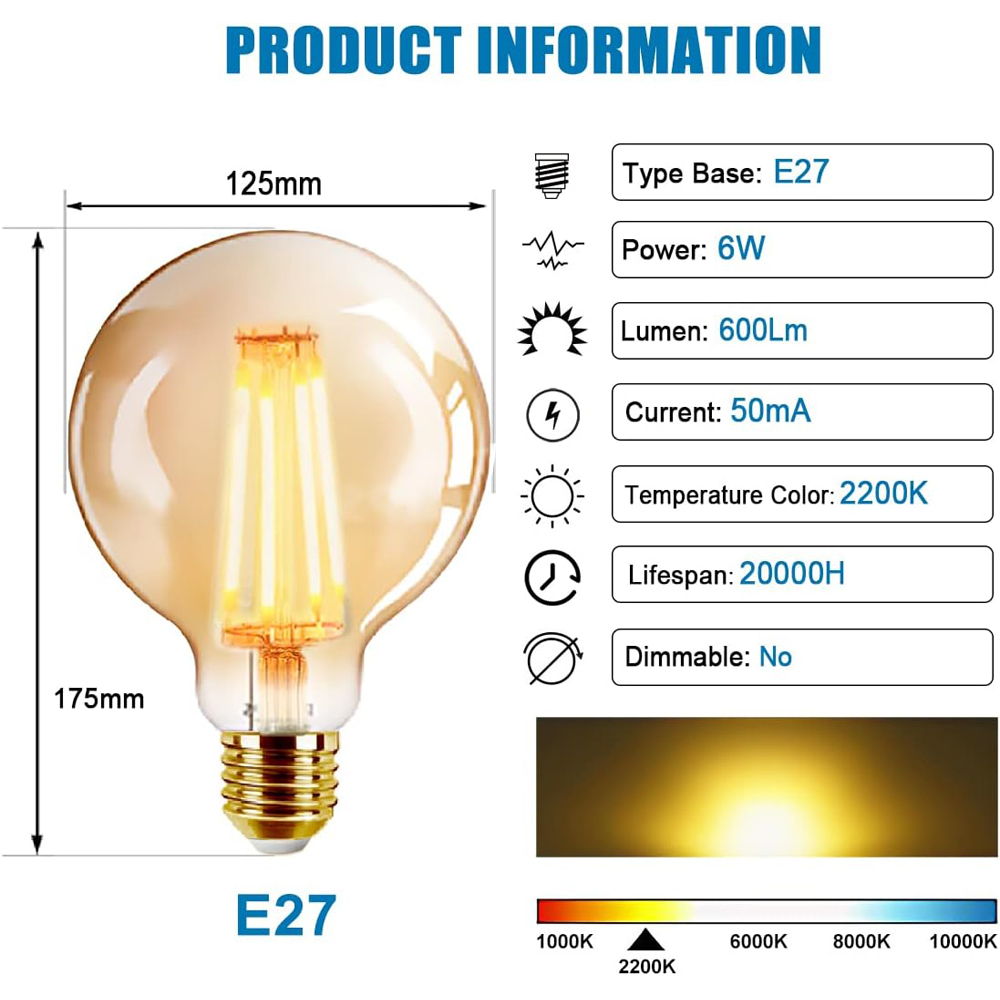 Extrastar 6W LED Ornamental Ball Bulb with an E27 fitting offers a warm amber glow (2200K), perfect for creating a cosy and vintage-inspired atmosphere. Featuring a stylish G125 globe design, this decorative bulb adds an elegant touch to pendant lights, table lamps, and open fixtures. The energy-efficient LED technology provides soft, flicker-free illumination while consuming less power than traditional incandescent bulbs. With a long lifespan and instant full brightness, it’s an ideal choice for homes, restaurants, cafés, and boutique spaces. Upgrade your decor with the Extrastar 6W LED Ball Bulb for a warm and inviting ambience.