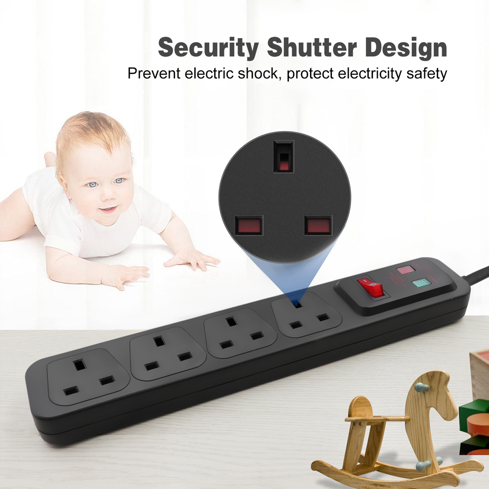 ExtraStar 4 Gang 13A Black Switched Surge Protected Extension Lead 5m is a safe and reliable power solution for your home, office, or workspace. Featuring four sockets and a single on/off switch, it allows you to control multiple devices simultaneously with ease. The built-in surge protection safeguards your electronics from power surges and voltage spikes, ensuring stable and secure performance. Equipped with Power & Surge LED indicators, it provides visual confirmation of active power and surge protection. With a durable 2-metre cable, this extension lead offers flexibility and convenience for various setups