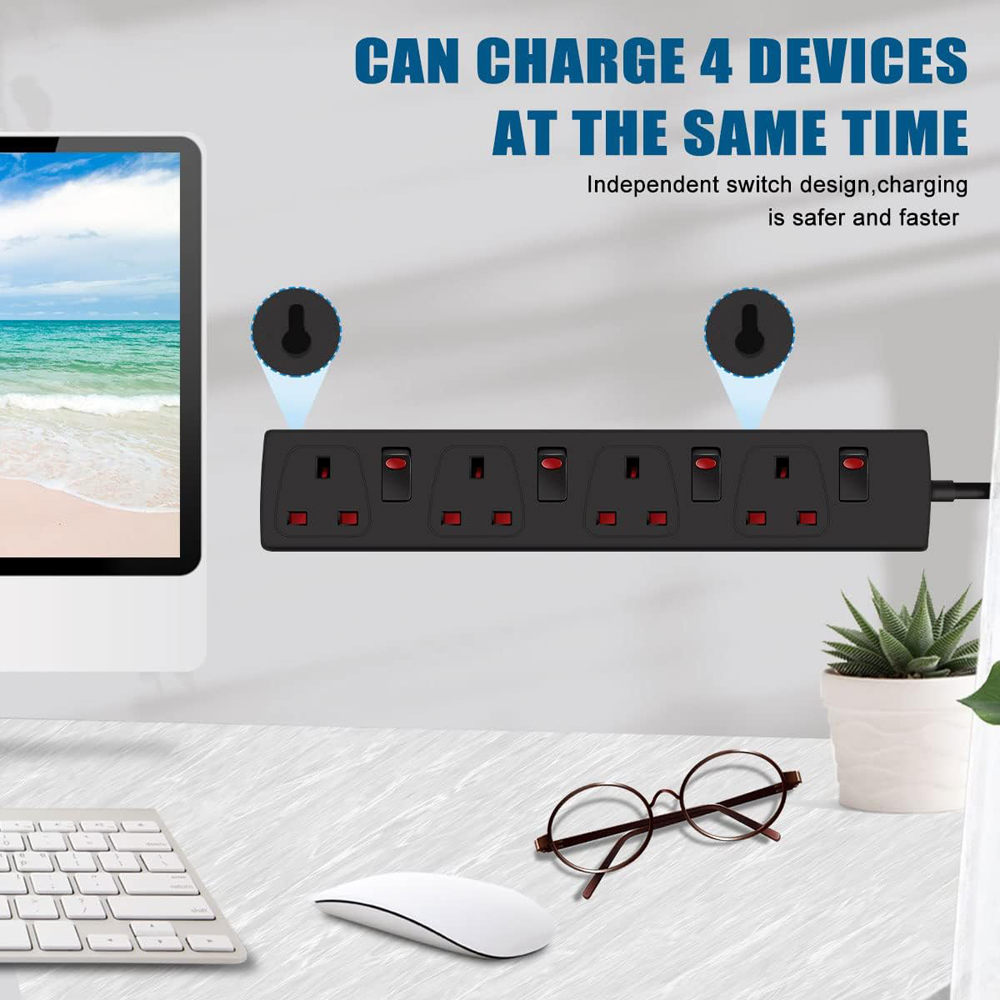 - 4 individually switched sockets
