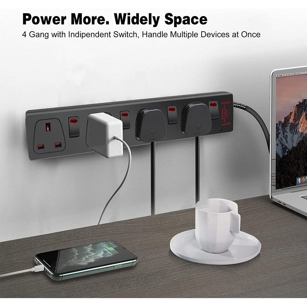 ExtraStar 4 Gang Individually Switched Surge-Protected Extension Lead (Model:KF-ESBD-4K4/2M) is an excellent choice for home or office use. Designed with individual switches for each socket and integrated surge protection, it provides convenience, safety, and control for your devices. The 2-meter cable length ensures flexible placement, while its compact design is perfect for limited spaces.