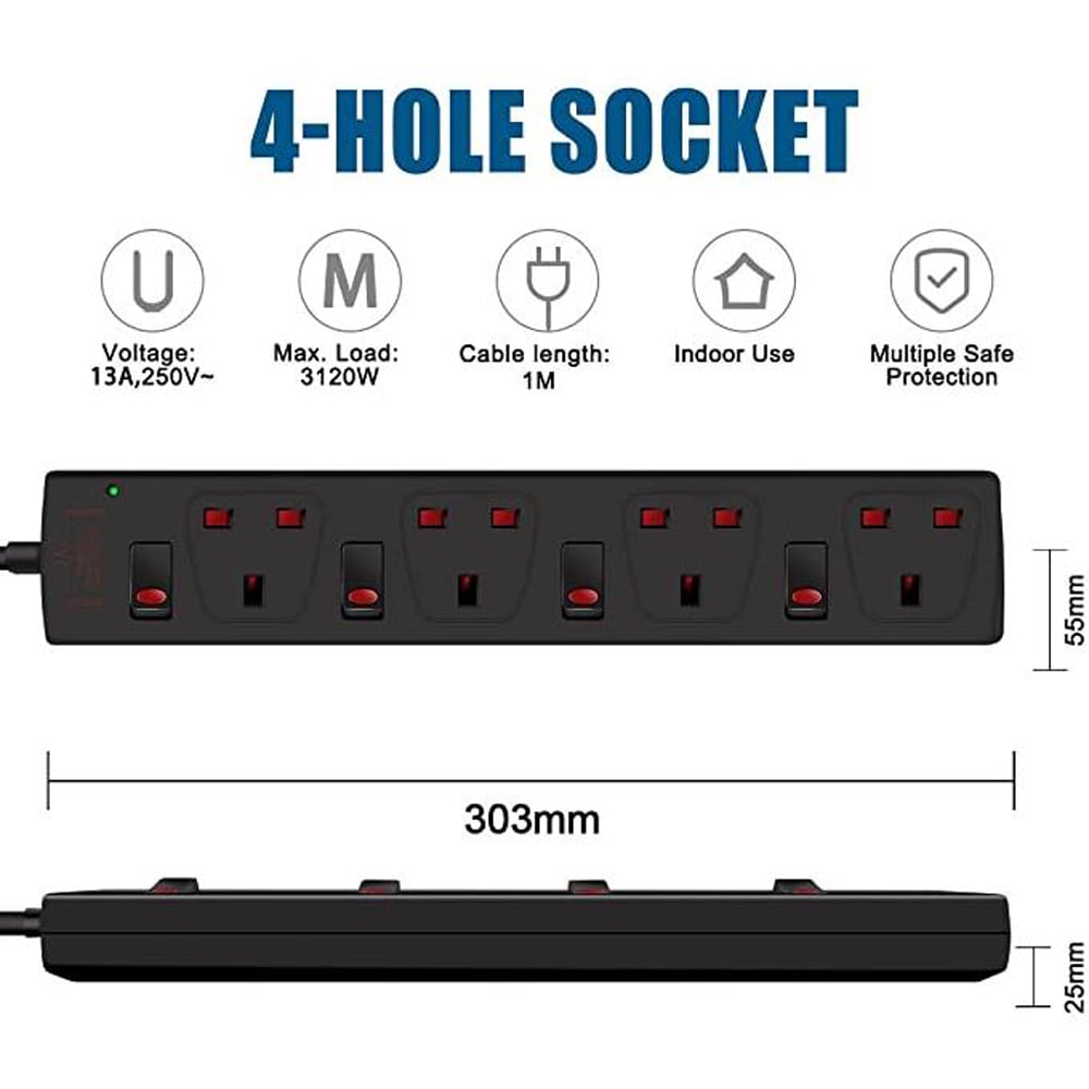 ExtraStar 4 Gang Individually Switched Surge-Protected Extension Lead (Model:KF-ESBD-4K4/3MB) is an excellent choice for home or office use. Designed with individual switches for each socket and integrated surge protection, it provides convenience, safety, and control for your devices. The 3-meter cable length ensures flexible placement, while its compact design is perfect for limited spaces.
